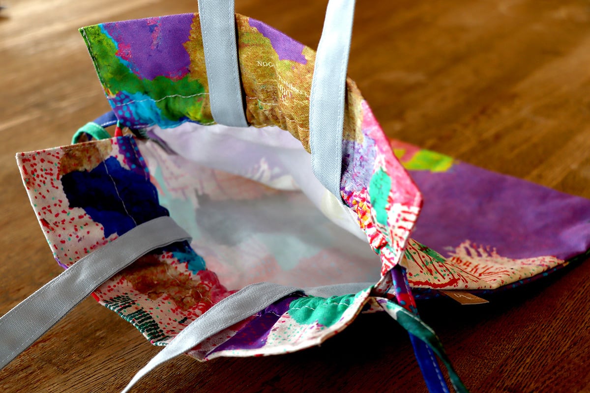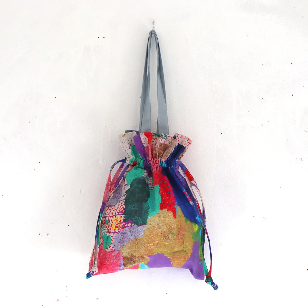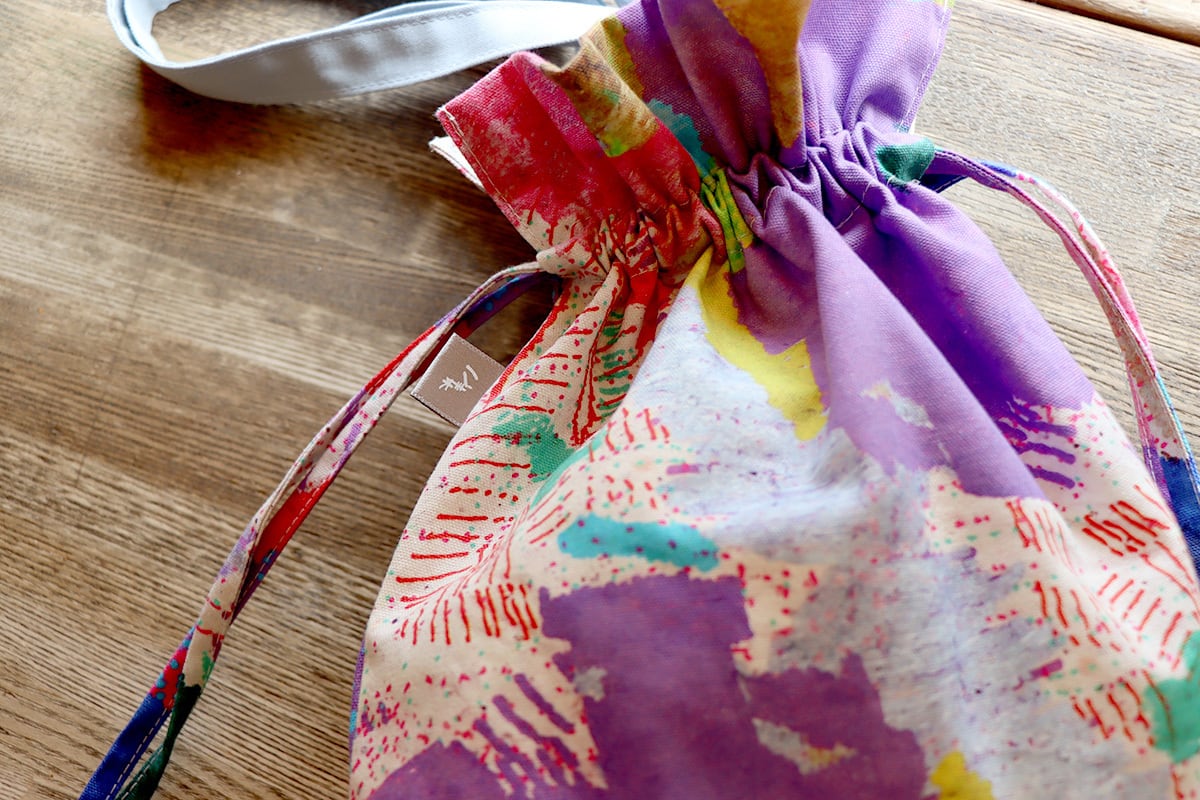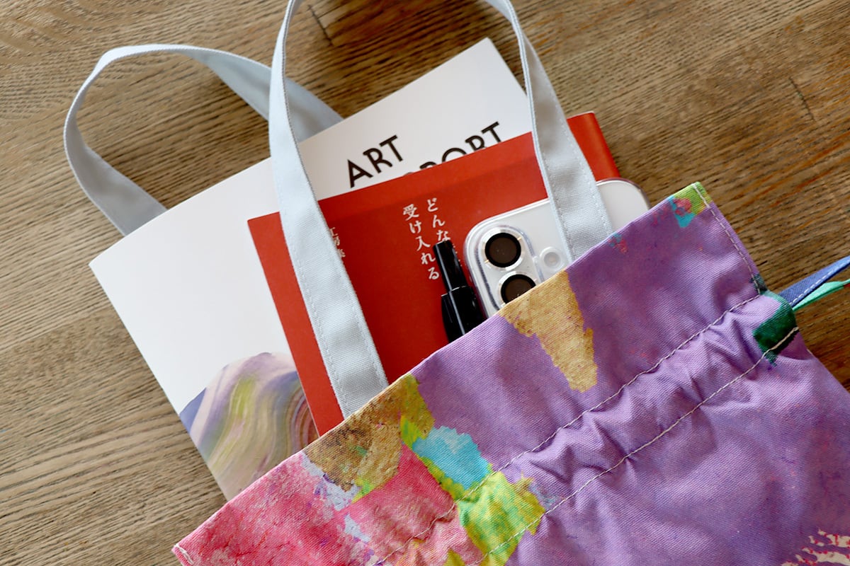 野口敏久さんの作品「てんてん」をあしらった巾着バッグです。